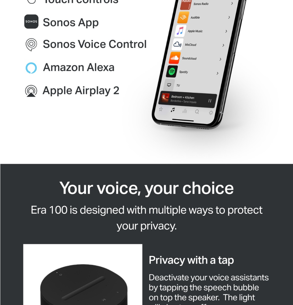 [新增]Sonos Era 100无线智能扬声器,带蓝牙和语音控制[7月初交付]